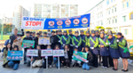 17일 김제선 대전 중구청장(왼쪽 다섯 번째)과 대흥동복지만두레 회원들이 직접 담근 김치를 들고 있다. 이날 복지만두레 회원들은 정성껏 준비한 재료로 김장김치를 만들어 독거노인과 장애인 가구 등 취약계층 100가구에 전달했다.