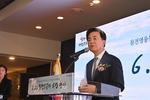 제22기 민주평화통일자문회의 대전지역회의가 지난 21일 공식 출범, 대전 자문위원 419명이 향후 2년간 지역사회 통일여론 형성과 정책 자문에 참여하는 가운데 이장우 대전시장이 축사하고 있다.