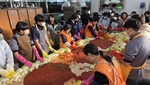 박희조 대전 동구청장(오른쪽 세 번째)이 19일 구청 1층 광장에서 열린 ‘천사의 손길로 만드는 김장 축제’에서 김장을 하고 있다. 이날 만든 김치는 관내 취약계층 3000여 세대에 전달됐다.