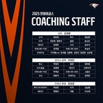 프로야구 한화이글스가 16일 2025시즌 1군 코칭스태프 구성을 완료했다.김경문 감독이 이끄는 1군의 경우 양승관 수석코치, 양상문 투수코치, 윤규진 불펜코치, 김우석 수비코치, 김정민 배터리코치가 담당한다.지난해 10월 신규 영입된 김민호 코치는 정현석 코치와 함께 1군 타격코치를 맡게 됐고 1루·외야코치는 추승우, 3루·작전코치는 김재걸 코치가 맡는다.퓨처스팀은 이대진 감독을 비롯해 박정진 투수코치, 정우람 불펜코치, 최윤석 수비코치, 박재상 3루·작전코치, 고동진 1루·외야코치로 구성된다. 지난해 신규 영입된 쓰루오카 코치는