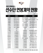 프로야구 한화이글스가 21일 2025년 재계약자 59명 대상 연봉협상을 완료했다.연봉 최고액은 노시환으로 3억 3000만 원에 계약을 마쳤다. 주현상은 지난해 1억 1000만 원에서 127.27% 인상된 2억 5000만 원이다. 1억 4000만 원 늘어나면서 최다 증가액을 기록했다. 박상원은 지난해 1억 9500만 원에서 2500만 원 상승한 2억 2000만 원에 계약했다.김태연은 전년대비 87.18% 인상된 1억 4600만 원, 이도윤은 46.67% 인상된 1억 1000만 원에 각각 계약하며 억대 연봉 선수가 됐다. 연봉 최고 증