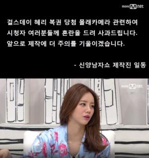 신양남자쇼 혜리, '신뢰' 해친 방송 … 저촉 수준 아니더라도'신양남자쇼'가 혜리 몰래카메라로 구설에 오른 가운데 이에 대해 '복권 위조'라는 주장이 제기됐다.7일 한 매체는 기획재정부 복권위원회는 Mnet '신양남자쇼'를 방송통신위원회에 제소했다고 보도했다.보도에 따르면 복권위원회 측은