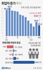 3월 훈풍이 부는 듯했던 고용시장에 다시금 한파가 찾아왔다. 특히 청년층에게는 더욱 가혹하다. 취업자 대부분이 60대 이상의 고령층인 데다 반도체 등 수출 부진 장기화 여파에 제조업 관련 취업자 수가 2년 4개월 만에 최대로 줄어든 영향이다.10일 통계청이 발표한 ‘2023년 4월 고용동향’ 자료에 따르면 지난달 취업자 수는 2843만 2000명으로 전년 동월대비 35만 4000명 늘었다. 취업자 수 증가폭은 지난해 6월(84만 1000명) 이후 9개월 연속 둔화 흐름을 보이다 올 3월(46만 9000명) 반등했으나 한 달 만에 증