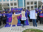 여성단체가 3·8 세계 여성의 날을 앞두고 기본권 보장 등을 촉구했다.대전여성성폭력상담소·시설협의회, 여담 등 13개 단체는 4일 대전시청 북문 앞에서 기자회견을 열고 “여성의 경제활동참여율은 남성대비 18.9%포인트 낮고 비정규직 여성 노동자는 전체 여성 임금노동자의 46%로 남성보다 15.4%포인트 높다. 한국 성별임금격차는 27년째 OECD 국가 중 꼴찌를 기록하고 있으며 돌봄과 가사 노동은 여전히 여성의 몫이다”라고 주장했다.이 자리에 참석한 전혜련 대전여성단체연합 운영위원도 “며칠 전 통계청은 지난해 합계출산율이 연간기준