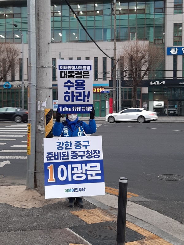 더불어민주당 이광문 대전 중구청장 예비후보가 29일 정부에 이태원 참사 특별법 수용을 강력 촉구하고 나섰다.