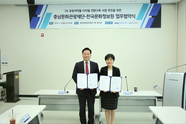 충남문화관광재단은 지난 8일 문화체육관광부 산하 한국문화정보원과 ‘공공저작물 디지털 전환구축 사업’ 업무협약을 체결했다.