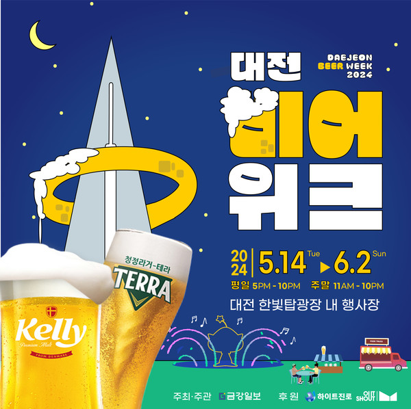 오는 5월 14일 화요일부터 6월 3일 월요일까지 대전 엑스포과학공원 한빛탑광장 물빛공원에서 맥주축제와 한우축제인 '2024 비어위크&특이하누'가 개최된다.