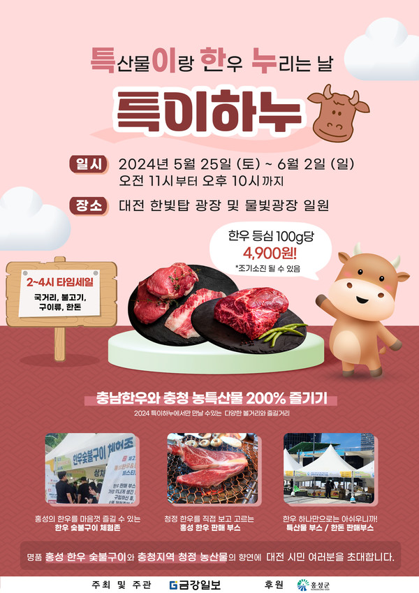 이어 오는 5월 25일부터 6월 2일까지는 '특이하누' 한우축제가 시작된다. 한우 등심을 저렴하게 구매할 수 있는 기회로 직접 구매한 고기를 숯불구이 체험존에서 구워 먹을 수 있는 것이 매력이다.