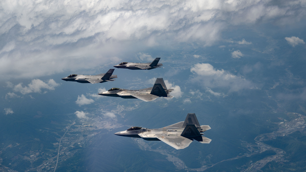 한·미공군은 16일 중부지역 상공에서 5세대 전투기 연합훈련을 실시했다. 훈련에는 우리 공군의 F-35A 프리덤 나이트 2대와 미 공군의 F-22 랩터 2대가 참가했다. 우리 공군 F-35A가 미 F-22와 기본전투기동 훈련을 실시한 건 처음이다. 양국 공군은 5세대 전투기 간 근접 공중전투기동훈련을 통해 상호 기동성능을 확인하고 최신 전술을 공유하며 연합 공중작전 수행능력을 한층 끌어올렸다. 훈련은 F-35A와 F-22가 공격과 방어 임무를 번갈아 수행하는 방식으로 실시됐다. 양국 전투기들은 서로 기체가 육안으로 식별 가능할 정도의 근접거리에서 치열한 공중전을 펼치며 최상의 기동성능을 발휘했다.
