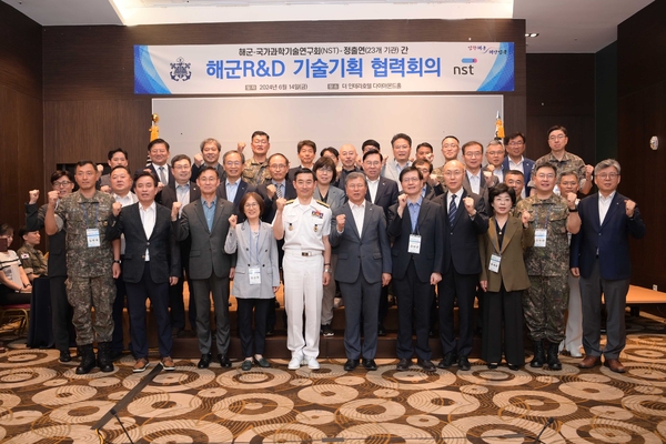 해군은 최근 경기 평택 더인테라호텔에서 국가과학기술연구회(NST), 정부출연연구기관(출연연) 23개 기관과 함께 연구개발(R&D) 기술기획 협력을 위한 회의를 열었다.