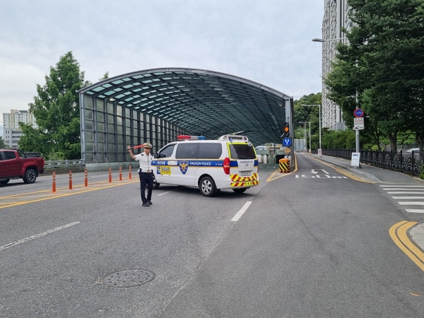 대전경찰청이 여름철 집중호우 시 지하차도 침수상황에 대비해 지하차도 통제 능력을 확인했다. 대전경찰은 20일 관내 지하차도 48곳을 대상으로 여름철 집중호우 시 지하차도 침수상황에 대비해 지하차도 통제 등 야외기동훈련(FTX)을 실시했다고 밝혔다. FTX에서 삼천지하차도 등 하천에 인접해 침수에 취약한 지하차도를 각 경찰서별 1곳씩 선정, 배수펌프 고장으로 인한 침수상황을 가정해 인근 경력 지원 출동, 교통통제 등 우회조치, 비상연락망을 통한 자치단체 연락 및 배수펌프 수리 조치 등 매뉴얼을 확인했다.