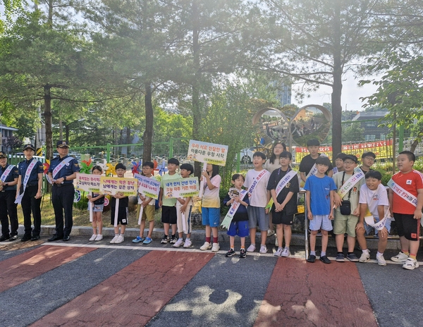 26일 대전목상초. 우렁찬 목소리가 비몽사몽한 등굣길에 활력을 더한다. 등교하던 학생들도 가방을 벗어던지고 하나둘 친구 맞이 대열에 합류한다. 학교 전담 경찰관도 색색의 연필을 학생들에게 나눠주며 학생들을 맞는다. 한 손에는 연필을, 한 손에는 친구의 손을 꼭 잡은 학생들의 얼굴에는 미소가 가득이다. 학교폭력 없는 학교가 되길 바라는 마음으로 구호를 열심히 외친 조유림(12) 양은 “먼저 와서 친구들에게 인사를 건네면서 학폭 예방 메시지를 전할 수 있어 뜻 깊다”며 “많은 친구들이 학폭은 나쁜 행동이라는 것을 인식하고 하지 않도록 꾸준히 예방 메시지를 전달하겠다”고 의젓하게 말했다.