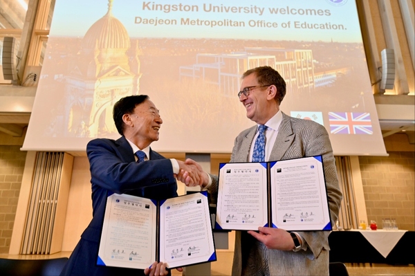 대전시교육청은 왕립자치구, 킹스턴대와의 협약을 통해 인공지능(AI) 기반 교육 협력을 강화하고 공동 연구, 미래 교육을 위한 수업 혁신에 협력할 계획이다. 특히 시교육청은 오는 9월 대전과 킹스턴구 초·중·고 국제교류 희망학교를 매칭시켜 국제수업을 운영하고 10월에는 킹스턴대와 함께 AI 융합교육 교사 컨퍼런스를 실시할 계획이다. 설 교육감은 “학생들에게 해외 수업교류와 해외 방문을 통한 다양한 경험을 제공, 미래를 선도하는 포용성과 창의성을 갖춘 글로벌 인재로 성장할 수 있도록 적극 지원하겠다”고 말했다.