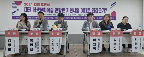 26일 대전NGO지원센터에서 학생문화예술관람비 지원사업 관련 긴급토론회가 열렸다. 학생문화예술관람비 지원사업은 지난 2021년 대전에서 전국 최초로 시행된 것으로 관내 초등학교 5~6학년, 중·고등학생 및 학교 밖 청소년에게 문화예술관람비 2만 원을 지원하는 게 핵심이다. 그러나 올해는 이미 5월에 예산이 조기 소진된 상태다.