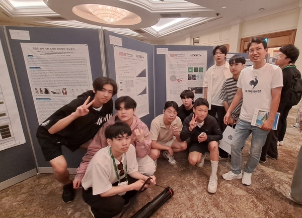 대덕대학교 드론로봇과 학생들이 최근 제주 롯데호텔에서 열린 대한전자공학회 하계종합학술대회에서 우주·국방 신산업·드론특화형 방산혁신클러스터 사업성과를 발표했다.