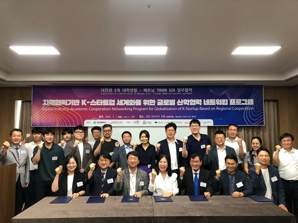 한남대학교는 최근 대전인터시티호텔에서 베트남 유력 바이오 제약사 THUAN GIA, 대전권 5개 대학연합(한남대, 건양대, 대전대, 대덕대, 한국폴리텍Ⅳ대)과 함께 지역협력기반 K-스타트업 세계화를 위한 글로벌 산학협력 네트워킹 프로그램을 개최하고 업무협약을 체결했다.