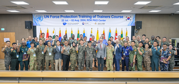 지난달 22일부터 2일까지 2주간 진행된 이번 과정은 유엔 국제평화활동에 참여하고 있는 방글라데시, 부탄 등 주요 병력공여 14개국 29명(군인 13명, 경찰 16명)이 참여했다. 유엔 전문교관은 부대방호 이론교육 및 실습을 접목한 교육을 진행했다. 교관화 과정은 향후 교육생들이 자국 국제평화활동 교육기관에서 유엔 최신 교리를 파병요원에게 교육 및 지도할 수 있는 교관화 능력 배양에 중점을 두고 이뤄졌다.