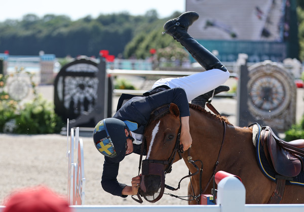 지난 6일(한국시간) 베르사유 궁전에서 열린 승마 장애물 경기에서는 스웨덴의 헨리크 에커먼이 말에서 떨어지는 사고가 발생해 아찔한 순간을 연출했다. 에커먼의 말 킹 에드워드가 장애물 하나를 통과한 뒤 에커먼을 떨어트리고 반대 방향으로 진행했다.