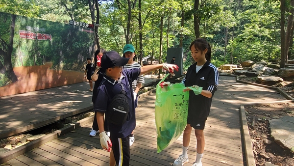 셋째 날은 계족산 황톳길을 거닐며 서중-플로깅(Plogging)을 진행했다.(*플로깅=조깅과 줍기의 합성어) 계족산 황톳길은 맨발걷기를 체험할 수 있기로 유명하다. 중학교 1학년생인 서중 영재들에게는 맨발로 황톳길의 느낌을 받아들이기에는 아직 두려웠었나 보다.