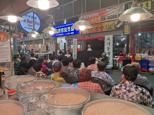 남사당 연희에 남아있는 꼭두각시 놀음 전통에 지역 기반이 가미된 경우로 서산 박첨지 놀이, 황해도 장연 꼭두각시 놀이 등이 있는데 지난 8월 충남 논산시 강경에서 선을 보인 ‘갱경 꼭두각시 놀음’ 공연은 그 외연을 한층 넓혔다. 충청권에 전승되던 중고제 판소리 부흥을 위한 노력이 이즈음 각 지자체를 중심으로 활발하게 전개되고 있어 다행이다. 중고제 판소리 시조 김성옥 선생을 떠올리게 하면서 옥녀봉, 채운산, 반야산, 불암산 등 지역 자연 경관을 배경으로 질펀한 대사 속에 유장한 가락을 타고 삶의 애환을 꼭두각시라는 유용한 매개체를 통하여 펼쳐놓는다. 팍팍한 세상, 쌓이는 스트레스를 시원스레 풀어주는 꼭두각시의 존재는 그래서 유익하다.