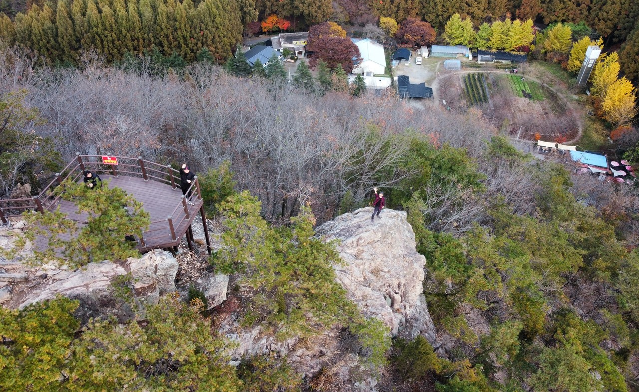 다른 곳이 단풍절정 혹은 끝물인 시기다. 11월 넘어갔는데 장태산도 붉은 빛을 보이지 않을까. 사전정보 없이 드론촬영 신고(허가)까지 하고 찾았다. 감탄사 나오는 컷을 드디어 담는구나, 기대에 가득찬 설렘으로 그곳으로 향했다.
