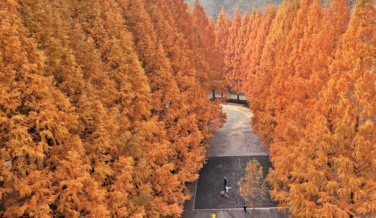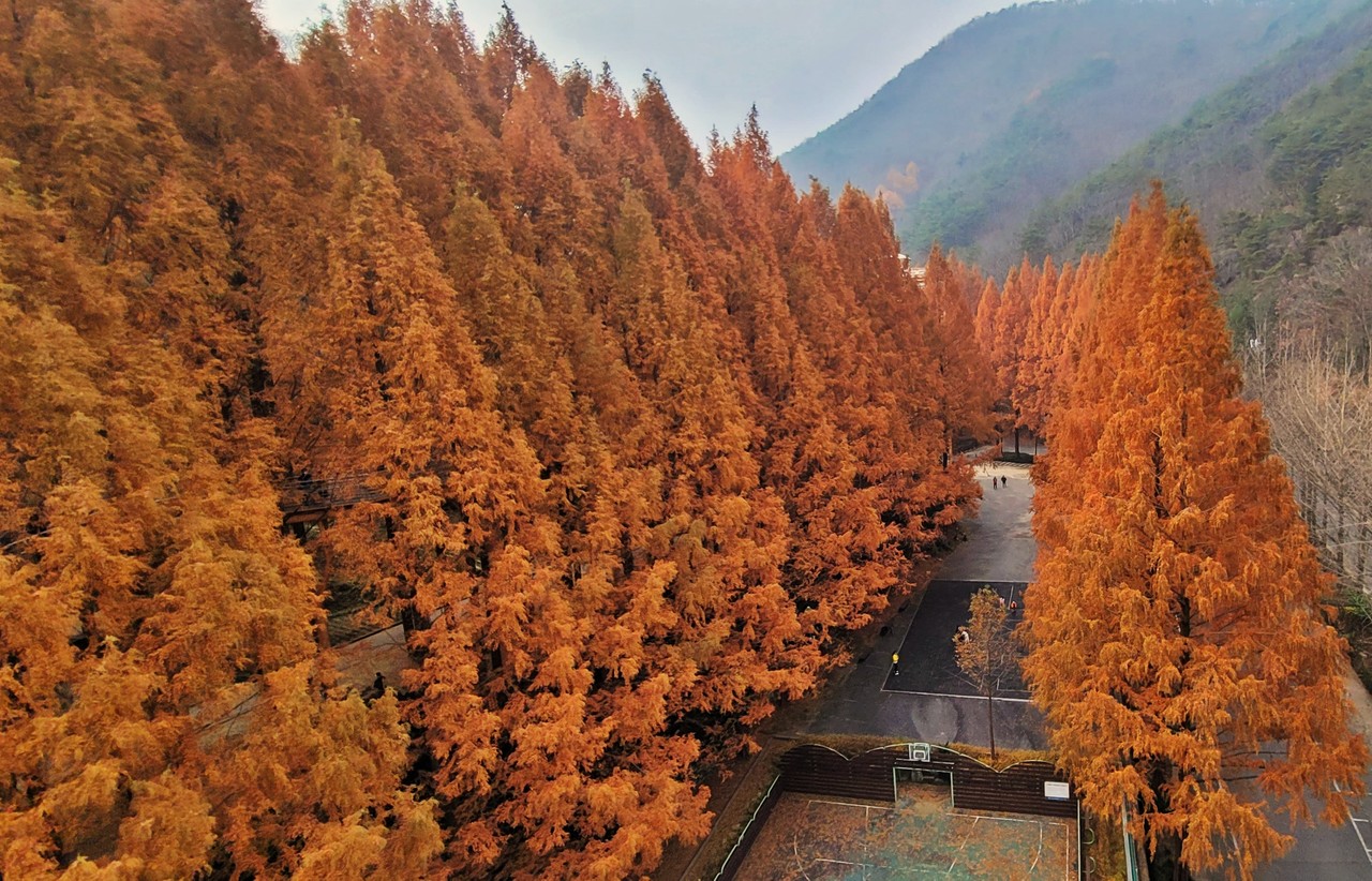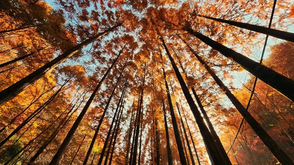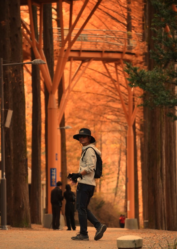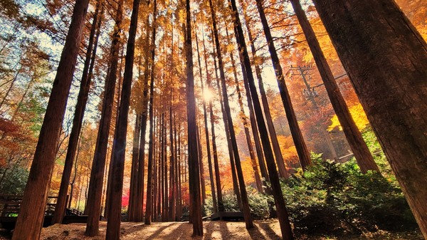 2022년은 예년보다 단풍시기가 조금 일러서 한 주 일찍 찾았다. 아, 이번엔 햇빛이 장태산에 왕림하시었다. 빛이 감싸안은 메타세쿼이아 숲은 온통 포토존. 무슨 말이 필요할까, 사진이 말해준다.