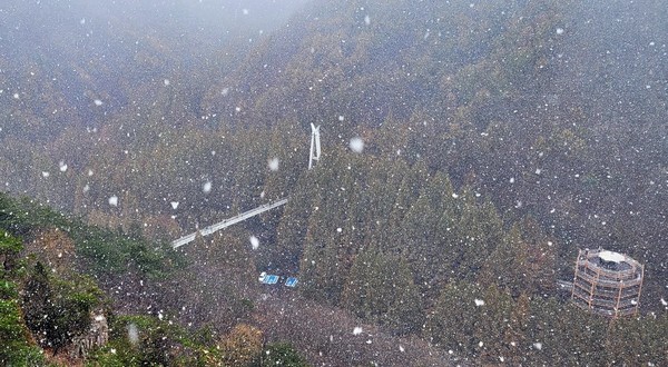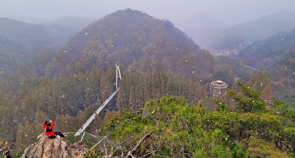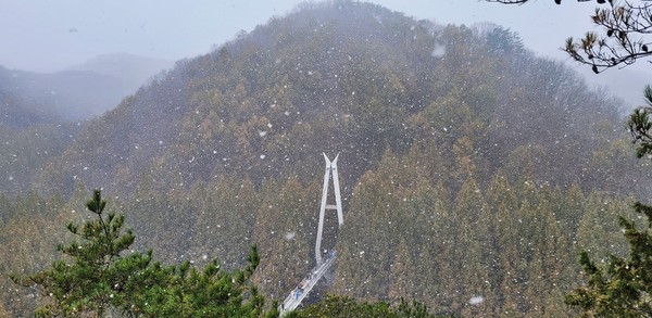 눈발이 날렸다. 흐린 가을 하늘에 편지를 쓰려고 했던 내 마음을 위로라도 하듯 굵은 눈송이가 날렸다. 출렁다리가 보이고 시야가 트이자 점점 강해졌다. 이게 뭔 조화랴, 가을 보러 갔는데 겨울을 만나다니... 여기저기서 함성이 터졌다. 예상치 못한 선물.