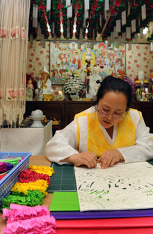 경전의 의미를 말로 표현하는 경문과 달리 깊은 의미를 풀어서 한지 위에 문양으로 표현하는 설위설경의 명맥을 이어가고 있는 권 원장은 3년 간의 수행을 거친 후 지난 2004년 불가에 입문했다.