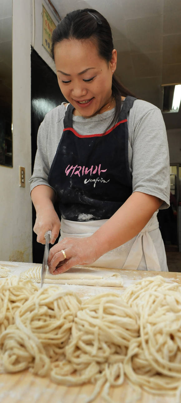 어린 시절 할머니가 칼국수를 만드는 장면은 참 재미난 구경거리였다. 투박한 손으로 반죽을 치대고 홍두깨로 밀어 납작하게 펴서 접고, 칼로 숭떡숭떡 썰어 면을 술술 풀어내면 어느새 김이 모락모락나는 칼국수가 완성됐다.살짝 데친 애호박을 듬뿍 얹어 후루룩 입 안으로 넘기면 칼국수란 음식은 할머니의 마음처럼 담백하고 따뜻하게 느껴졌다.모두에게 친근한 추억을 불러일으키는 이 칼국수를 파는 집이 대전엔 유난히 많다.그래서인지 적당히 한끼를 때우고 싶을 때 가장 먼저 떠오르는 메뉴가 칼국수다. 격의 없는 친구나 선후배와 점심식사를 하러갈 때 부담 없이 던지는 말도 “칼국수나 한그릇 먹으러 가자”다.칼국수 파는 집이 대전에 많은 이유는 뭘까. 언제부터 칼국수가 대전 사람들의 단골메뉴가 된 걸까.▲대전의 대표음식이 ‘칼국수’인 이유?= 대전에서 길을 걷다 가장 흔히 마주치는 음식점 간판은 단연 ‘칼국수 전문점’이다. 최근엔 칼국수 체인점도 늘고, 소규모로 창업을 하거나 기존 메뉴에 칼국수만 추가하는 식당도 늘어나는 추세다.대전에 칼국수집이 많은 것은 그만큼 지역민들이 칼국수를 즐겨 먹기 때문이다.대전시민들은 칼국수처럼 싸고도 맛난 음식을 찾기 어렵다고 생각하는 것 같다. 또 넣는 재료에 따라 다양한 맛을 낼 수 있어 자신의 기호에 맞는 맛집을 찾아갈 수 있다는 점도 인기를 누리는 이유다.저렴한 가격에 부담없이 누구나 좋아하는 음식이 대전의 칼국수다. 이렇듯 시민 모두에게 엄청난 인기를 누리고 있지만 지난 2000년 대전시가 선정한 대전의 육미(설렁탕, 돌솥밥, 삼계탕, 구즉도토리묵, 숯골냉면, 대청호 민물고기매운탕)에는 칼국수가 빠졌다.그러나 시민들은 특정 식당이나 지역에 한정돼 있지 않고 대전 어느 곳을 가든지 맛볼 수 있다는 점에서 칼국수를 대전의 대표음식으로 꼽고 있다.이 때문에 시가 올해 지역 음식산업 육성을 위해 추진 중인 ‘대전 대표음식 브랜드화 사업’ 최종 용역 보고회에선 특색음식으로 발굴된 두부두루치기와 함께 칼국수가 올랐다.▲칼국수를 ‘칼’국수라 부르는 이유?= 칼국수란 이름은 밀가루를 반죽, 칼로 잘라 만들기 때문에 붙여진 이름이다. 금방 삶아낸 면 위에 잘 익은 김치를 처억 얹어서 먹는 칼국수는 뜨거운 음식이어서 겨울용이라고 생각하기 쉽지만, 오히려 땀을 뻘뻘 흘리는 여름에 더 즐겨먹는 음식이다.칼국수는 닭고기 육수나 멸치?바지락?해물?사골 등으로 국물을 만드는데, 고기나 뼈로 우려낸 국물은 구수한 맛을 내고, 해물로 우려낸 국물은 시원한 맛을 낸다. 건더기로 감자?호박?김?파 등을 사용하며, 닭고기를 채썰어 넣기도 한다.끈기가 많고 좋은 밀가루에 달걀 1개를 잘 풀어서 섞은 물로 되직하게 반죽, 오래 치댄 다음 촉촉한 보에 싸서 20분쯤 재운다. 이 때 날콩가루를 섞어서 반죽하면 더욱 차지고 맛이 좋다.재워 두었던 반죽을 국수 도마에서 얇고 고르게 밀어서 날밀가루를 조금씩 뿌리면서 말아 가늘게 썬다.육수가 팔팔 끓을 때 국수를 넣고 애호박과 파를 채로 썰어 넣어 뚜껑을 닫고 끓인다. 삶은 닭고기를 곱게 찢어서 국수와 함께 넣고 끓여도 좋고 나중에 꾸미로 얹어도 좋다. 국수가 위로 뜨고 애호박이 파랗게 익었으면 그릇에 떠서 대접하면 든든한 한끼 식사가 된다.