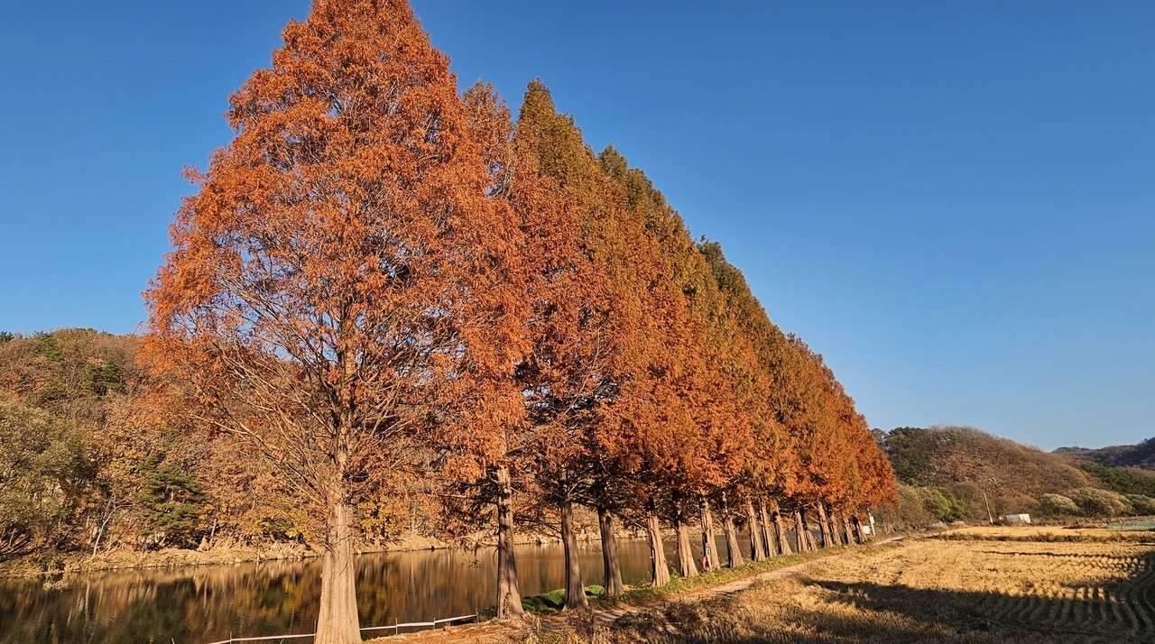 집으로 돌아오면서 장태산의 붉은 계절이 언제까지 이어질지 생각해본다. 개인적인 경험과 판단으로 예측하면, 11월 말까지 멋진 풍광을 볼 수 있을 거라 생각한다. 11월 말과 12월 초를 고비로 메타 잎이 많이 빠지면서 겨울채비를 할 것으로 보인다. 장태산자연휴양림은 한가로운 겨울도 좋다.