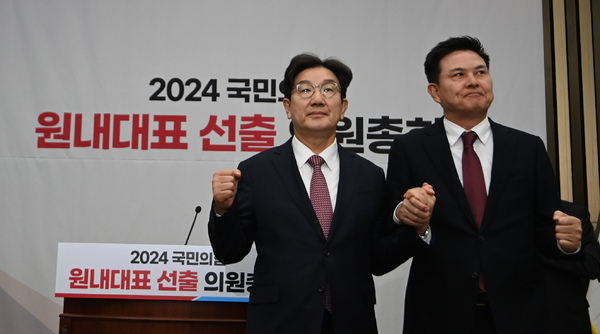 권 의원은 이날 국회에서 당 소속 의원 108명 중 106명이 참여한 가운데 진행된 원내대표 선거에서 과반인 72표를 득표하며 34표를 얻은 김태호 의원(4선·경남 양산을)을 누르고 당선됐다.