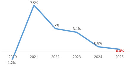 대한상공회의소가 소매유통업체 300곳을 대상으로 ‘2025년 유통산업 전망’을 조사한 결과 내년 소매시장은 올해 대비 0.4% 성장에 그칠 것으로 집계됐다. 이는 2020년 코로나 펜데믹 이후 가장 낮은 수치다.