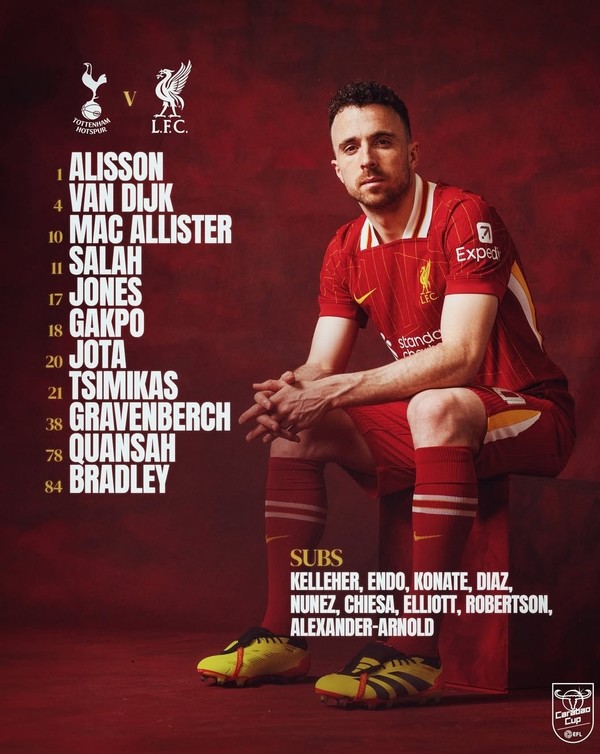 리버풀은 코나테의 체력 관리로 콴사가 출격했고, 맨유전 부진한 아놀드 대신 브래들리가 나왔으며 소보슬라이의 질병 악화로 인해 커티스 존스가 선발로 나섰다.