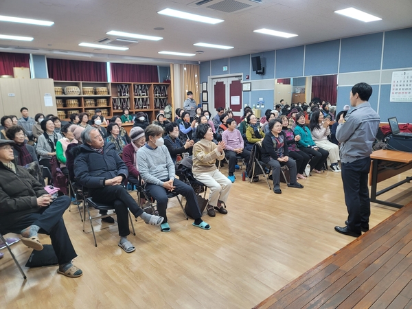 대전유성경찰서는 15일 노은1동행정복지센터에서 60대 이상 여성 60여 명을 대상으로 찾아가는 보이스피싱 범죄예방 교육을 실시했다. 교육에서는 관내 피해사례와 최근 유행하는 카드 배송원을 사칭한 기관사칭형 보이스피싱 범죄 수법이 공유됐다.