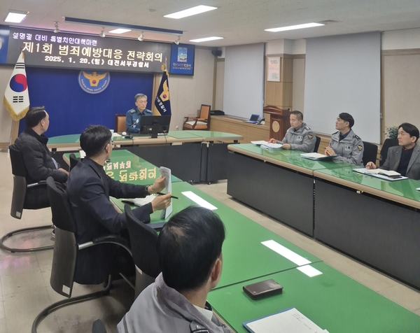 서부서는 20일 제1회 범죄예방대응 전략회의를 열고 설 명절 치안 제고 방안을 공유했다. 서부서는 5대범죄, 112신고 통계분석 등 치안 상황을 근거로 주요 범죄 발생장소와 제2금융권, 금은방 등 현금다액취급업소를 중점 연계순찰하고 방범진단을 실시하는 등 범죄취약요소를 사전 제거하기로 했다.