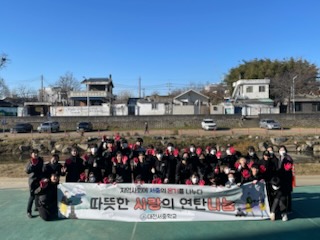 지난 1월 4일에 학생들과 함께 ‘2024학년도 따뜻한 사랑의 연탄나눔’ 봉사 활동을 전개했다. 대전서중학교는 전교생이 137명인 작은 학교이지만, 이날 학교장을 필두로 교감, 생활안전부장, 학생자치 담당교사와 40여 명의 학생이 함께 참여하여 지역사회에 대전서중학교의 온기를 나누었다. 작년에 이어 두 번째로 진행한 교육활동으로 대전서중학교의 전통으로 삼을만한 의미 있는 시간이었다.