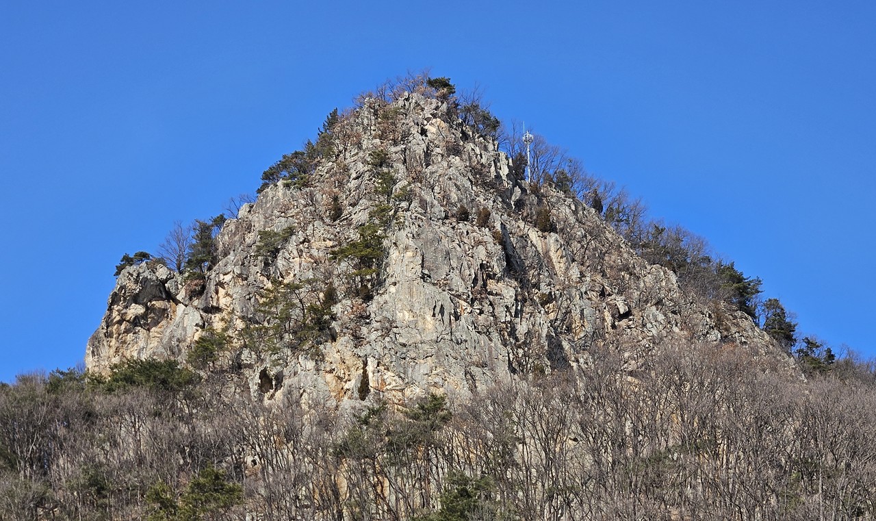 살짝 올라갔다 오기로 했다. 철길을 앞에 두고 왼쪽 길로 접어든다. 길 따라 가다보면 공사중인 평창산단 지원도로 옆으로 올라가는 길이 나있다. 20여 분이면 정상이다. 장쾌한 조망이 기다리는 곳이다.
