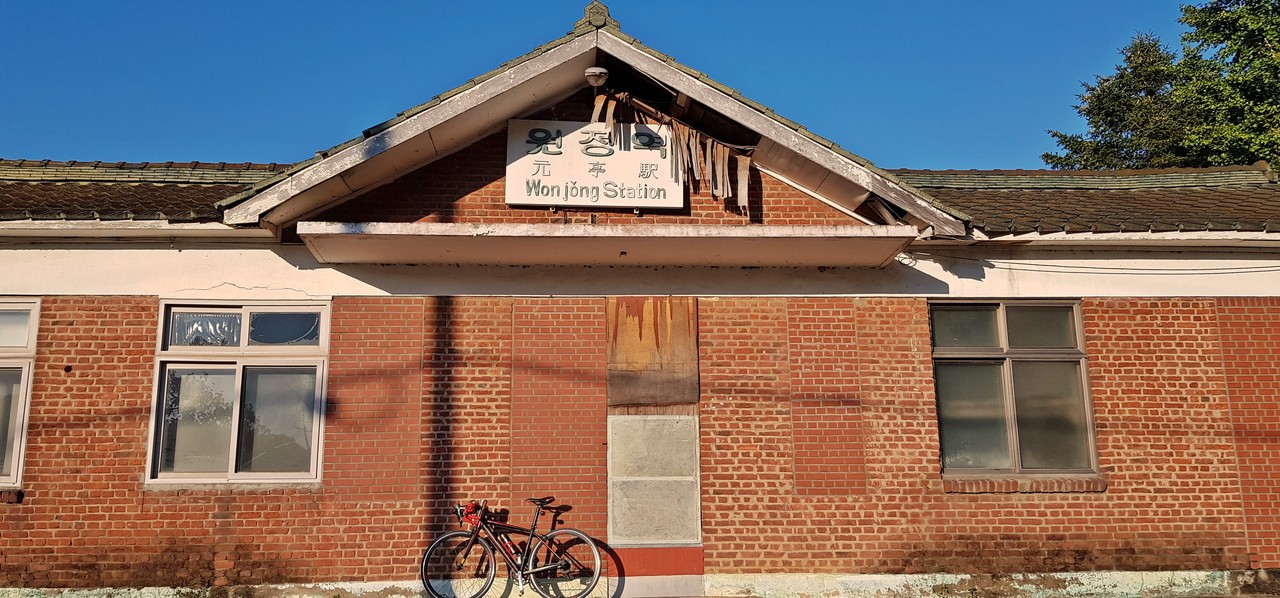 이럴수가, 1분 뒤 빨간색 새마을호 하행선이 온다. 아쉬움 한 스푼 남기고 걷는다. 곧 원정구름다리를 만난다. 육교를 건너 마을길을 걷는다. 200년 된 느티나무와 하이파이브 하고 원정역 쪽으로 간다. 1970년대 옛 모습을 그대로 간직한 원정역. 기차가 서지않는 폐역이다.