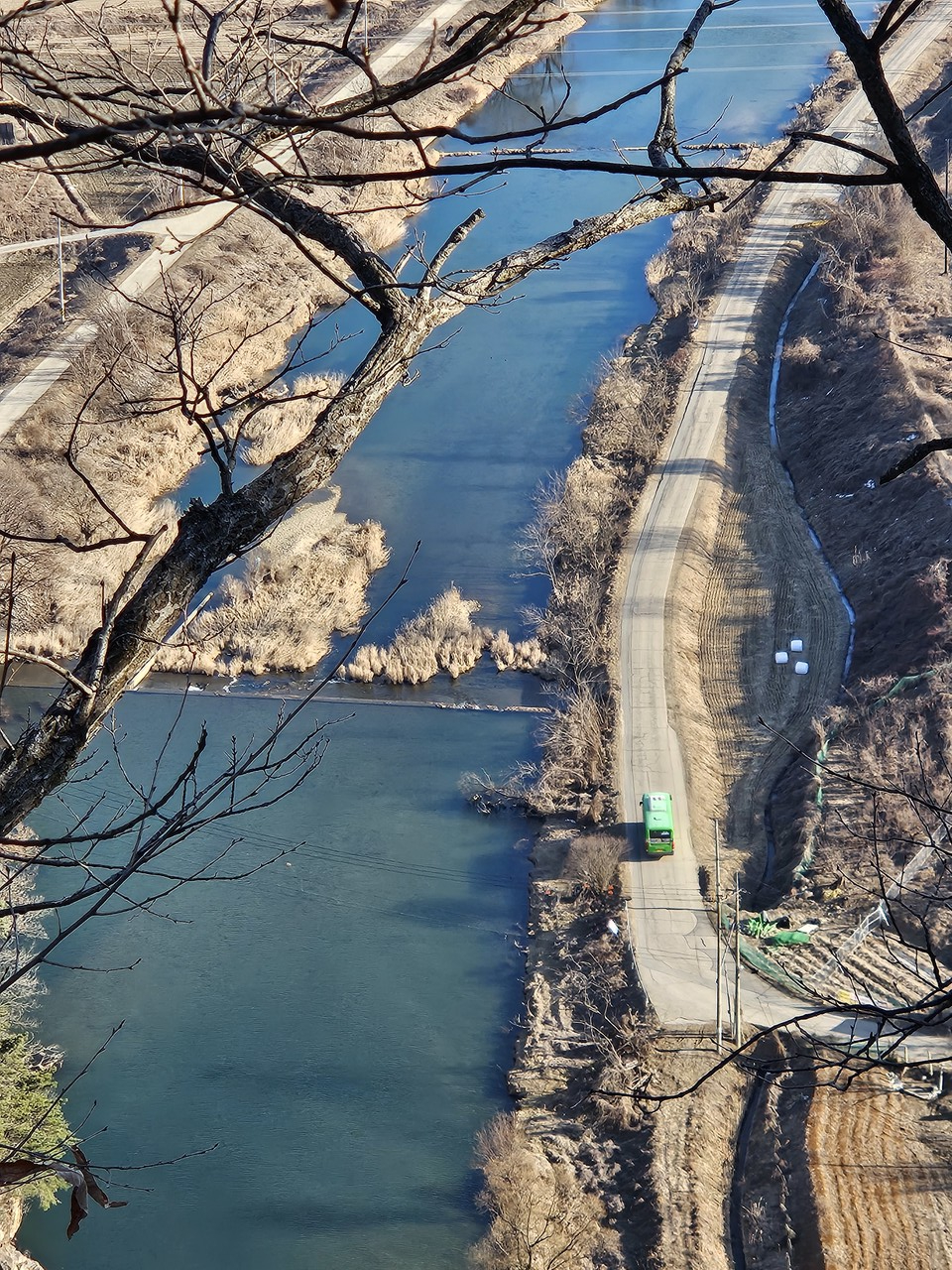 무도리마을을 휘감고 돌아 흐른 두계천이 위왕산 앞에서 다시 휘돌아나간다. 물길 위로 기차가 지나가고 63번 버스가 지나간다. 그 옆엔 평창산단으로 이어지는 도로 공사가 마무리단계다. 짙은 물빛과 그 위를 오가는 백로들이 수묵화를 완성한다. 물 한 모금. 바위 위에서 풍경을 만끽한다. 날씨가 좋아 다행이다. 햇살도 풍성하다. 봄이 가까이 왔나보다. 살짝 봄냄새도 난다.