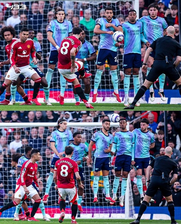 전반 추가시간 가르나초가 페널티 박스 부근에서 반칙을 얻어냈고, 브루노 페르난데스가 환상적인 오른발 슈팅으로 선제골을 만들었다.