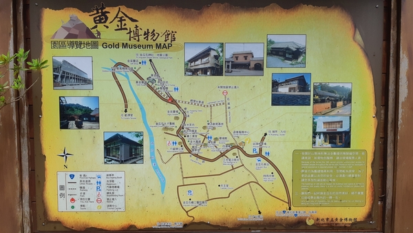 2004년 신베이시 시립박물관이 된 황금박물관의 입장료는 80대만달러(한화 약 3200원)였는데, 입장료는 아마도 대만 대부분의 관광지에 통일된 요금인 것 같다. 박물관 입구부터 옛 금광 입구까지는 채굴한 광물을 실어 나르던 협궤열차 선로가 그대로 남아있다. 협궤열차 선로 옆에는 광부들이 오갔을 길이 있고, 광부들의 힘든 채굴 모습을 조각한 조각상들이 띄엄띄엄 세워져 있다. 광산 채굴 당시 공기를 순환시키는 초대형 모터가 웬만한 건물보다 더 크게 자리 잡고 있는데, 전시관 왼편이 광산으로 들어가는 입구다. 관광객들 대부분 광산 입구 오른쪽에 있는 전시관을 찾아가는데, 1층에는 진과스의 역사를 잘 정리해 놓았다. 2층으로 올라가면 세계에서 가장 큰 220㎏의 금괴가 유리 상자 안에 전시되어 있다. 이 금의 가치가 무려 300억 원이나 된다고 한다. 금덩이를 전시하고 있는 유리 박스 양쪽에 구멍을 뚫어서 사람들이 만져볼 수 있게 만들었다.