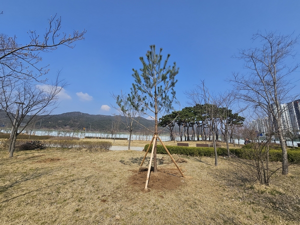 홍예공원 홍성 쪽 충남공감마루 인근과 예산 쪽 주출입구 인근에 한 그루 씩, 두 그루를 지난달 26일 옮겨 심었다.