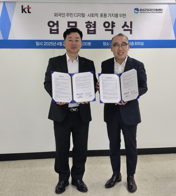 KT 충남·충북광역본부는 충북 음성군 외국인지원센터와 외국인 주민의 안정적인 지역사회 정착을 위한 업무협약을 체결했다고 24일 밝혔다.