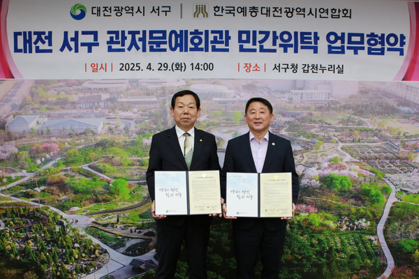 한국예총 대전시연합회(대전예총)는 대전 서구청 3층 갑천누리실에서 서구 관저문예회관 관리운영 위탁 협약식을 체결했다고 30일 밝혔다.
