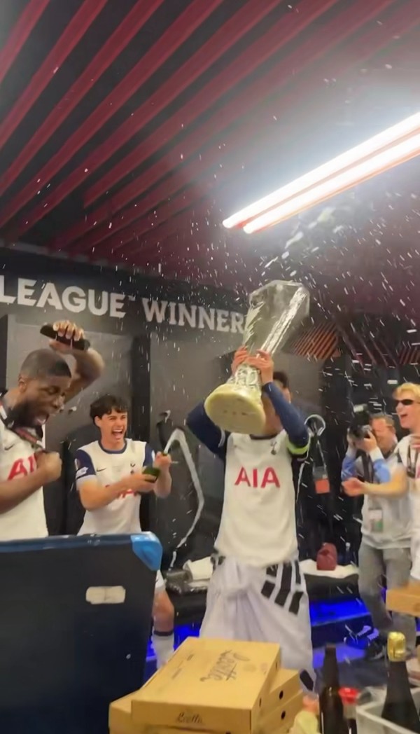 라커룸에서도 손흥민의 기쁨은 멈출 줄 몰랐다. 손흥민은 유로파리그 트로피를 계속 들어올렸으며 팀원들은 샴페인을 뿌리며 우승의 기쁨을 만끽했다.