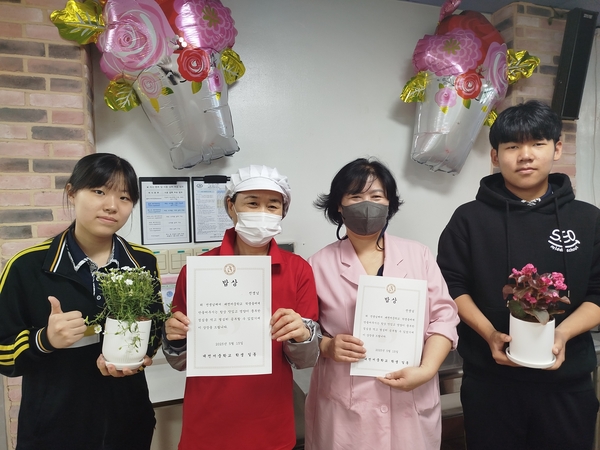 백일홍, 사계국화, 남도자리, 베고니아 등의 모종 60개, 화분, 흙, 장갑 그리고 학생들의 아이디어로 만들어진 멋진 상장을 6교시에 후다닥 세팅하고 학생들이 오기를 기다렸다. 종례를 받고 하나둘씩 모여든 학생들은 친구들과 마음에 드는 꽃을 들고 화분에 옮겨심기 시작했다. 학생들은 다 심은 화분과 열심히 만든 상장을 들고 선생님들과 사진을 남겨왔고, 각자 심은 화분을 가슴에 품고 집으로 돌아갔다.