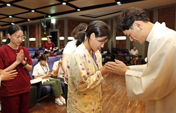 가톨릭대학교 대전성모병원은 지난 20일 상지홀에서 입사 1년 차 간호사 70명을 대상으로 손축복식을 열었다.