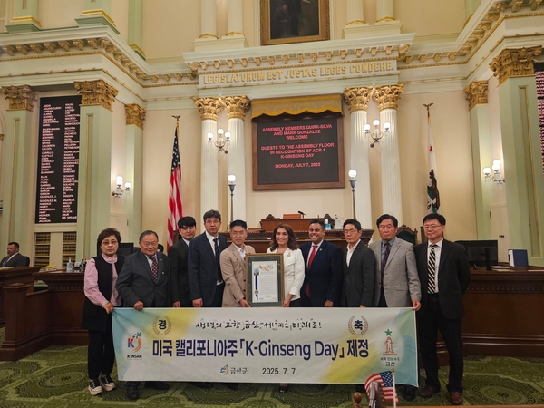 미국 캘리포니아주 의회는 지난 7일 ‘한국 인삼의 날(K-Ginseng Day)’ 기념일 제정을 공식적으로 의결했다.