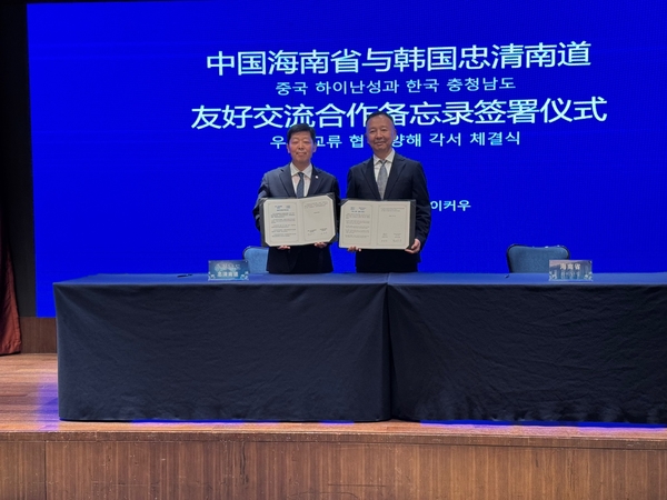 중국 최남단 하이난성 방문에서는 ‘충청남도-하이난성 간 우호교류 협력 양해각서(MOU)’를 체결하고 하이난성 바터얼 부성장과 면담을 통해 관광·경제·교육 등 전방위 협력 확대 방안을 논의했다.