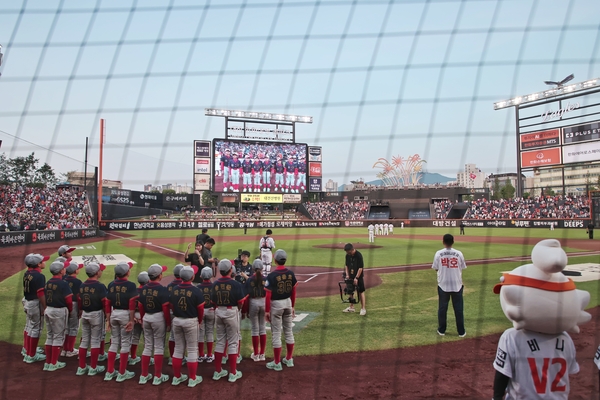 당진시(시장 오성환)와 당진시체육회(회장 백종석)은 지난 8일 대전 한화생명볼파크에서 열린 한화이글스와 기아타이거즈의 프로야구 경기에서 합덕초등학교 야구 선수단이 애국가를 제창했다고 9일 밝혔다.